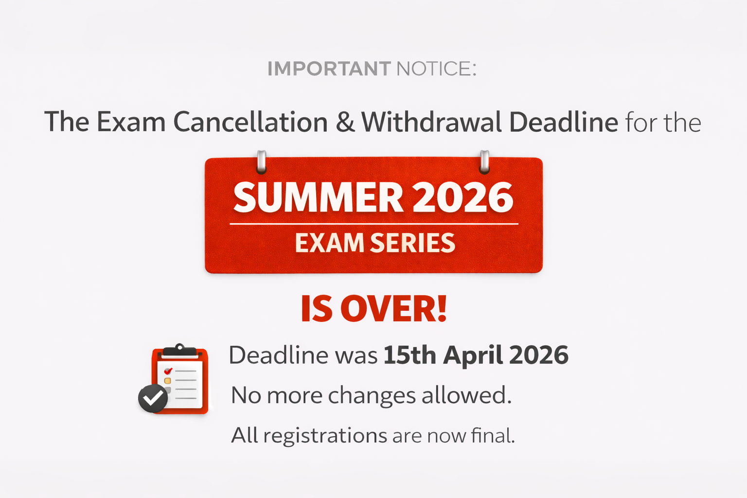 • Candidates have the right to cancel their exams under certain circumstances, but they need to cancel the exams before the cancellation deadline. The final cancellation deadline is beforehand the JCQ board amendment deadline. But CIE is before the 1st entry deadline, please ask the exams officer or find out the board website when the specific deadline is. After the 2nd deadline, there is no cancellation/removal of CIE entry.